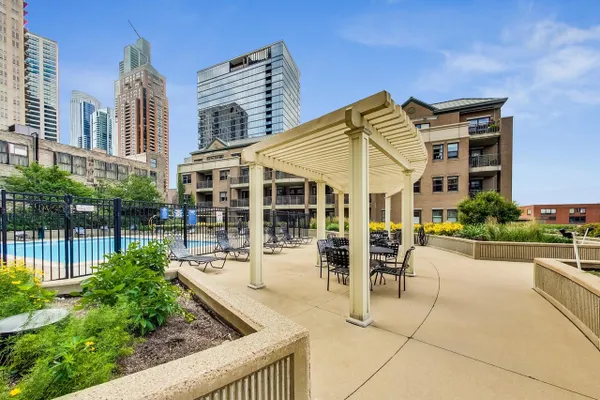 Experience the pinnacle of South Loop living in this rare end-unit 1 bedroom, 1 bath condominium. The star of the show is the expansive, south-facing private terrace-a true outdoor sanctuary perfect for sun-drenched gardening or hosting parties. Inside, the home shines with wide-plank flooring and a chef-inspired kitchen featuring 42" cabinetry, granite counters, and a peninsula. The oversized primary suite easily accommodates a king-size retreat and boasts a huge walk-in closet. The full bath has an updated vanity and combination shower tub. In unit laundry features a brand-new washer and dry. A prime garage spot conveniently located next to the garage entrance is included in the price, plus you get a storage locker. Building amenities; a 24-hour doorman, pool located, plus hospitality suites and a party room. Out the door of the home you are steps to the CTA train, two blocks to Grant Park, Museum Campus, and the picturesque Lake Front path, Target, Walgreens, Trader Joe's, as well as an abundance of dining and entertainment options. This home and the location is everything one needs for a fabulous city living experience.