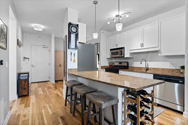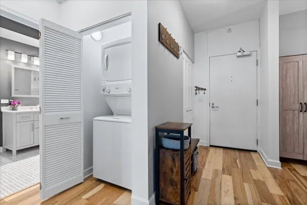 Beautifully upgraded 1-bedroom plus den in the heart of the South Loop! Unit features include a stainless steel/granite kitchen, hickory hardwood floors throughout, fully remodeled marble bathroom with walk-in shower, in-unit washer/dryer, and versatile den that offers endless options: perfect as a dining room, home office or second bedroom. Expansive private terrace (24x13) with City views and coveted prime garage parking spot ($25k) along with direct access to the building's pool and serene community vegetable/herb garden, new dog run all conveniently located on the same level. Close to ALL public transportation, South Loop Elementary, British Academy and Jones College Prep Schools, OSM, Day Star, the Loop, Target, Jewel, Marianos, Trader Joes, Whole Foods, Roosevelt Collection, Grant Park, Lake and easy access to expressway. Whether you're looking to live in or invest, this home is a rare find in one of Chicago's most walkable and vibrant neighborhoods